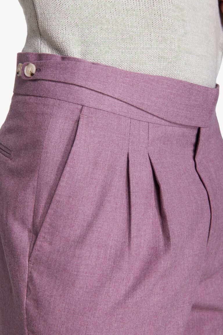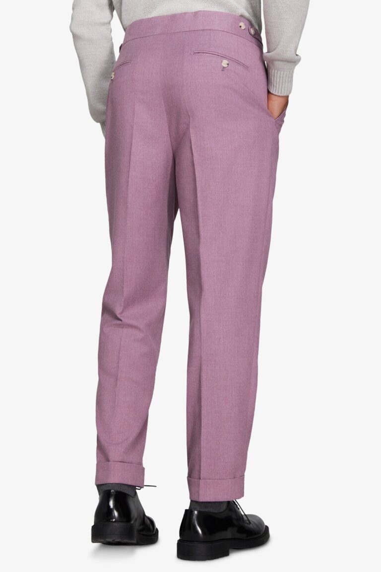 Elegantne pantalone u bordo nijansi sa flannel efektom koji donosi sofisticiran izgled i meku teksturu. Klasičan kroj sa kosim džepovima i diskretnim faltama daje im formalan, ali moderan karakter.