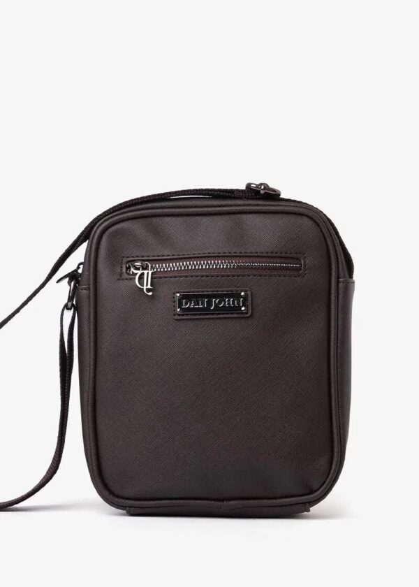 Torba od saffiano eko-kože sa podesivim ramenim kaišem i prednjim džepom sa rajsferšlusom.