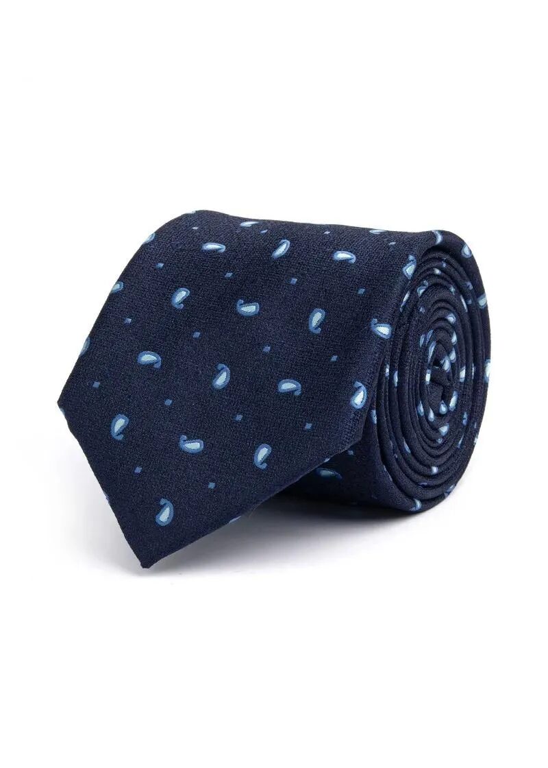 Elegantna muška kravata u tamnoplavoj boji sa diskretnim paisley dezenom predstavlja sofisticiran dodatak poslovnim i svečanim kombinacijama. Klasičan dizajn upotpunjen je suptilnim uzorkom koji dodaje karakter i stil svakom outfitu.