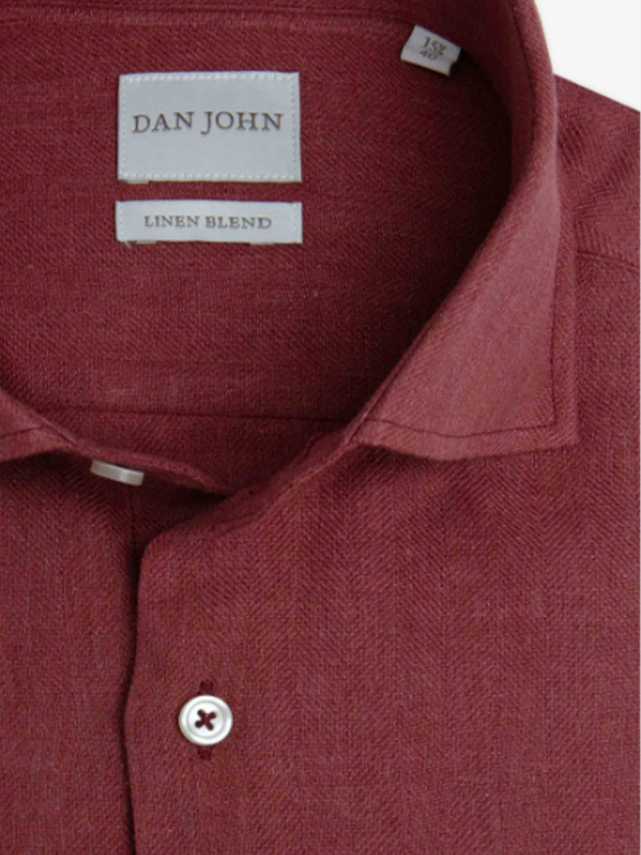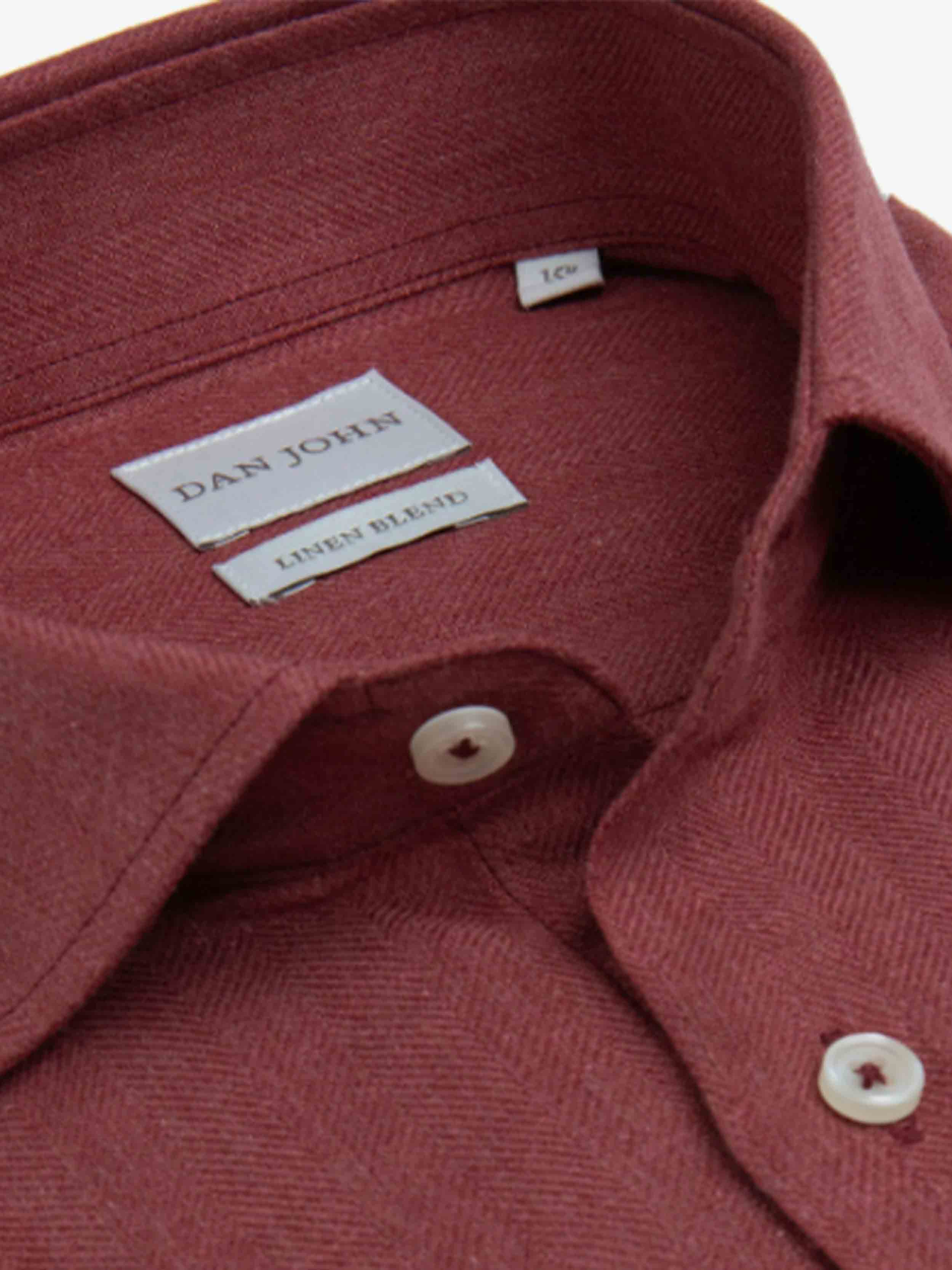 Košulja sa dezenom riblje kosti, izrađena od mešavine pamuka i lana. Slim kroj i mekani francuski okovratnik pružaju elegantan i udoban izgled.