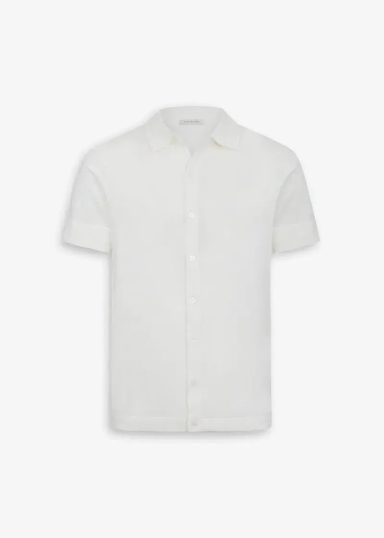Jednobojna pletena košulja izrađena od pamuka finoće 12. Kopčanje na dugmad i kratki rukavi. Pripijeni kroj daje moderan i uredan izgled.