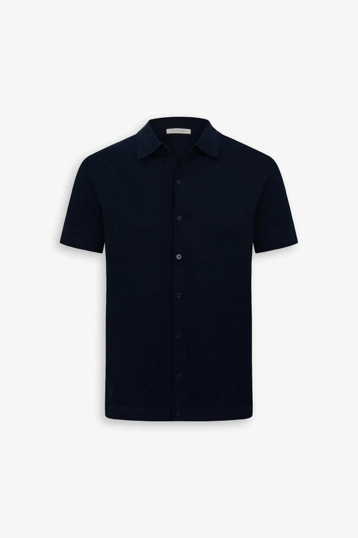 Jednobojna pletena košulja izrađena od pamuka finoće 12. Kopčanje na dugmad i kratki rukavi. Pripijeni kroj daje moderan i uredan izgled.