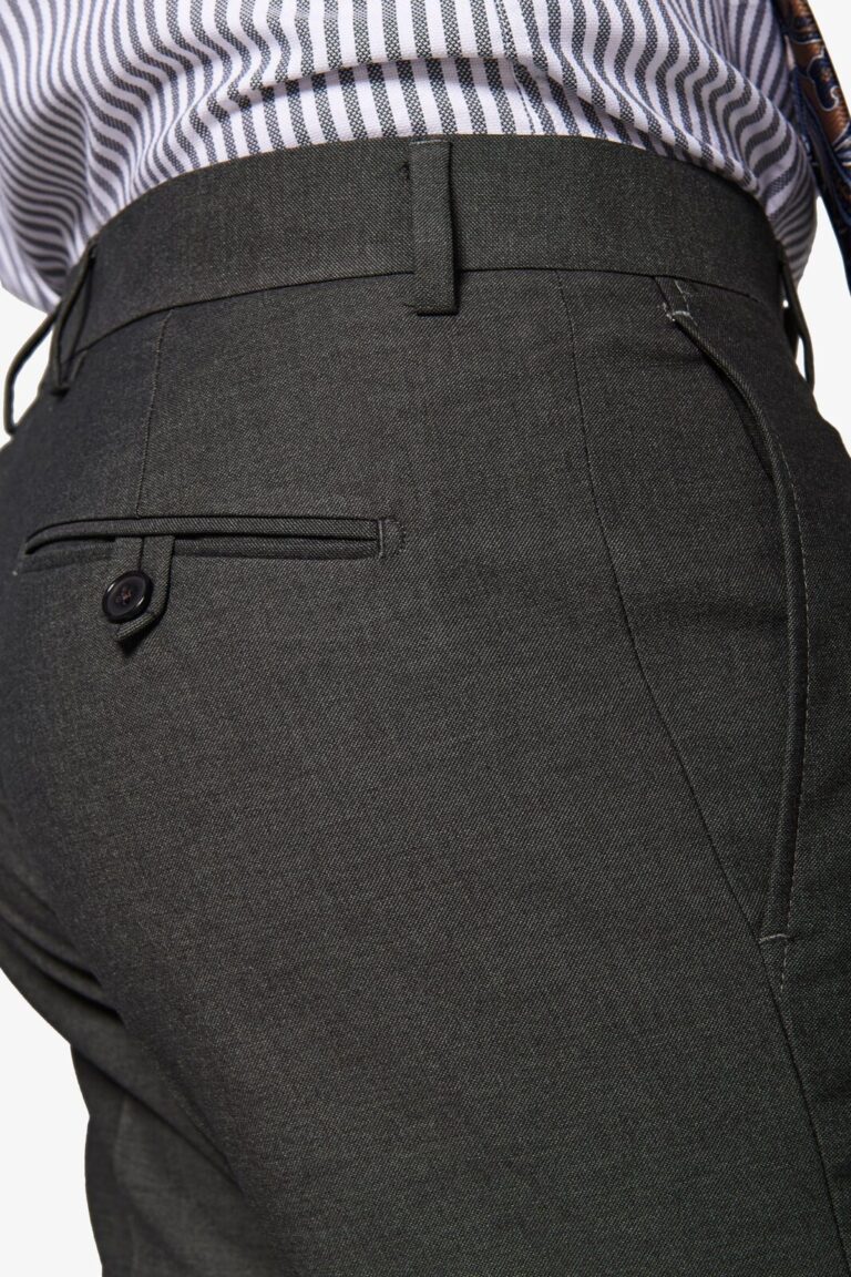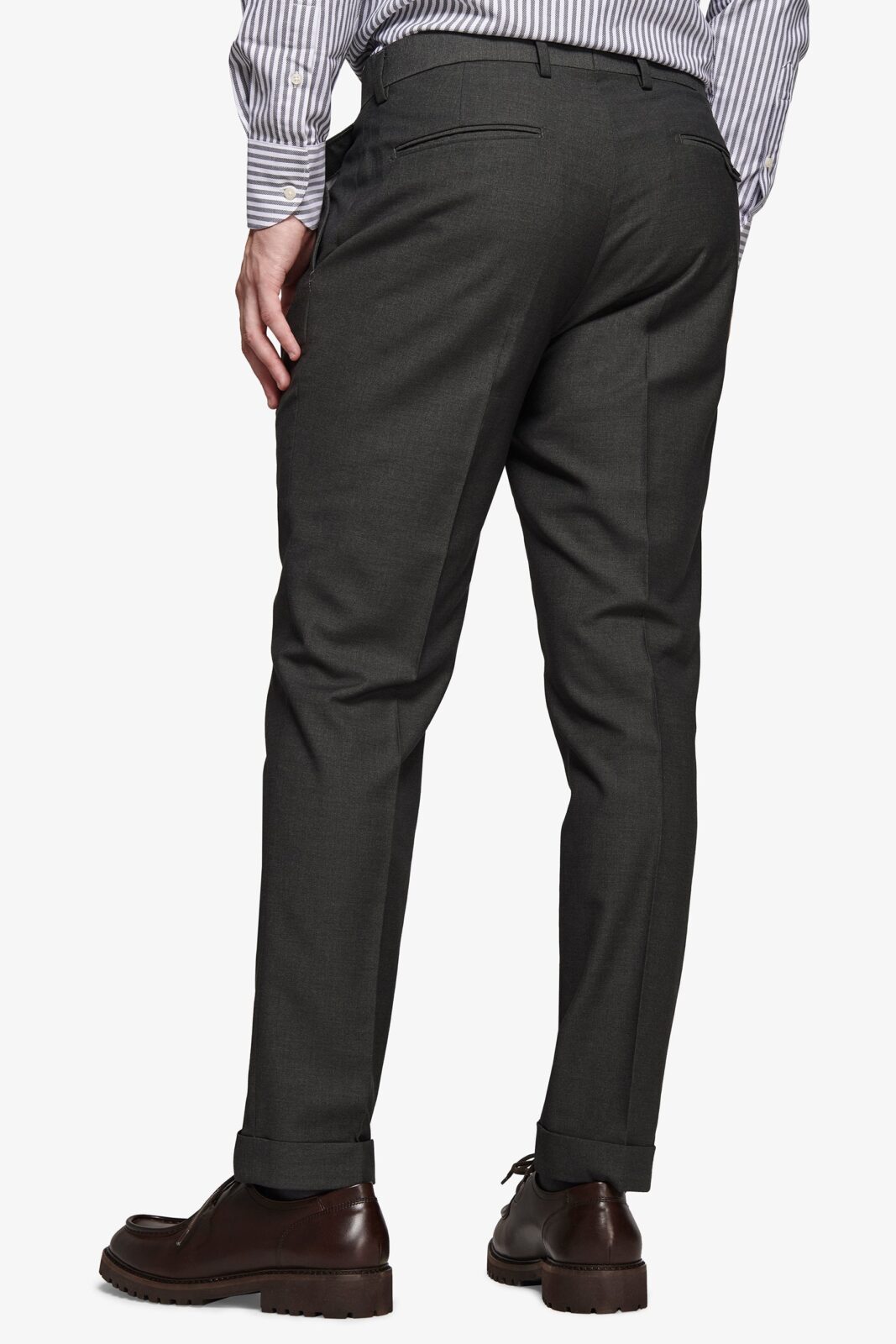Pantalone sa faltama i suptilnom mikro teksturom. Slim linija sa američkim džepovima pruža moderan i elegantan izgled.
