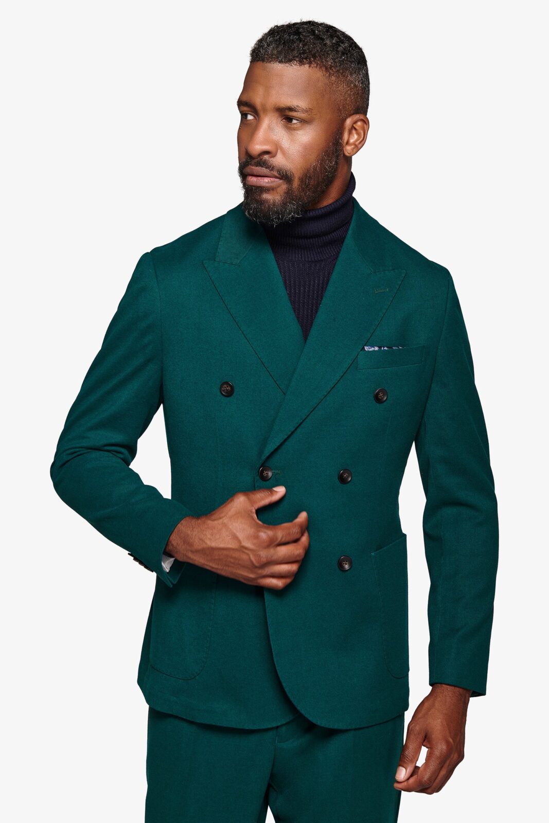 Jednobojni dvoredni sako za odelo od tkanine. Slim kroj sa našivenim džepovima. Dekonstruisane izrade i bez postave, za lagan i moderan izgled.