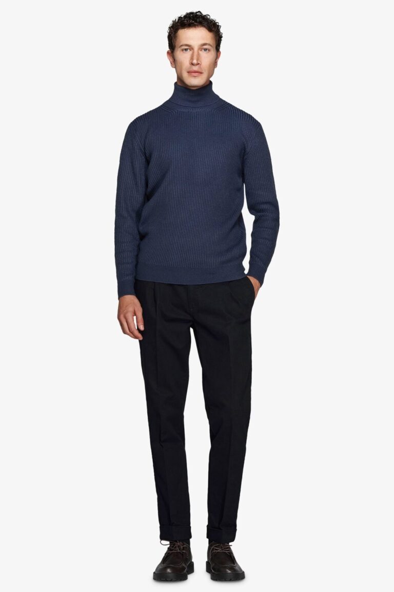 Rolka sa visokim okovratnikom i engleskim rebrastim tkanjem. Slim fit kroj pruža moderan i elegantan izgled.