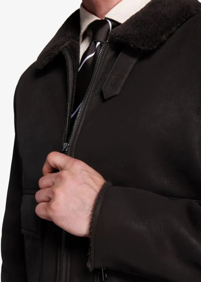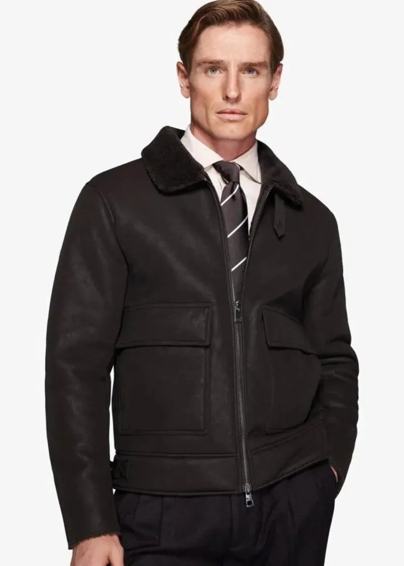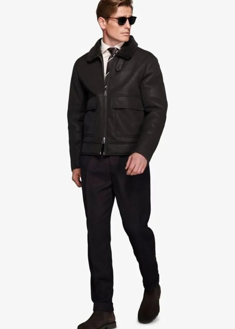 Elegantna avijator jakna u tamno braon nijansi izrađena od eko kože donosi snažan i sofisticiran izgled. Klasičan dizajn sa rajsferšlusom, naglašenom kragnom i velikim džepovima sa preklopom čini je upečatljivim komadom za hladnije dane.