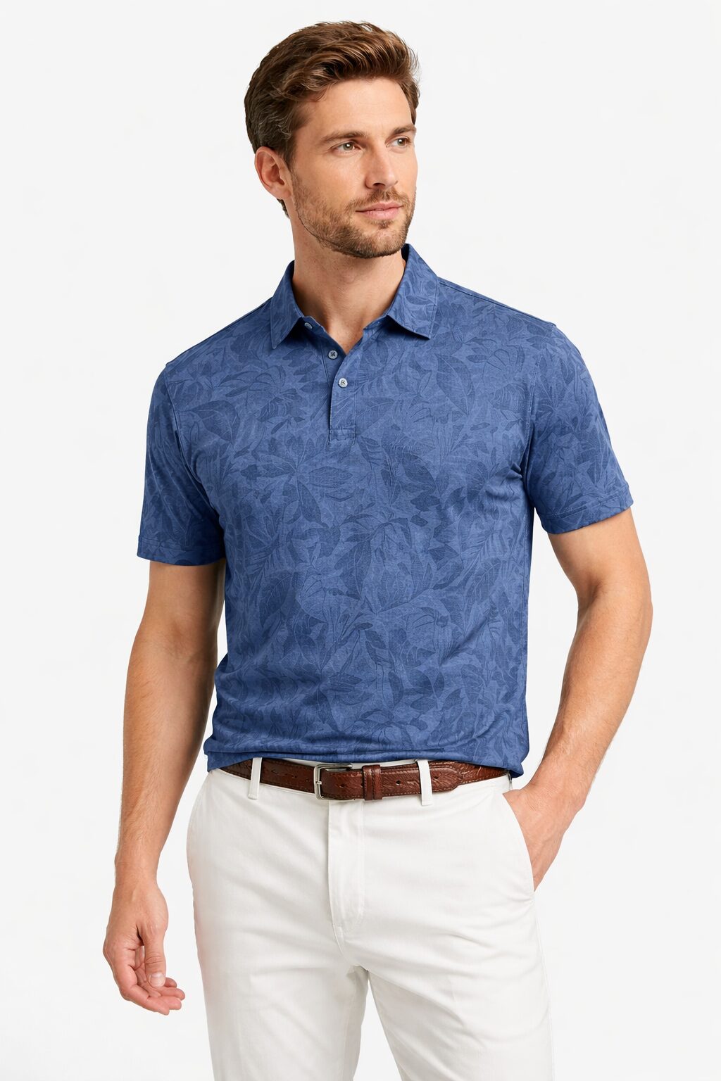 Elegantna polo majica u plavoj nijansi sa suptilnim dezenom koji daje sofisticiran i moderan izgled. Izrađena od 100% pamuka, pruža maksimalnu udobnost, prozračnost i prijatan osećaj tokom celog dana. Idealan izbor za ležerne, ali i smart casual kombinacije – lako se uklapa uz pantalone ili bermude za savršen Dan John stil. Sastav: 100% pamuk