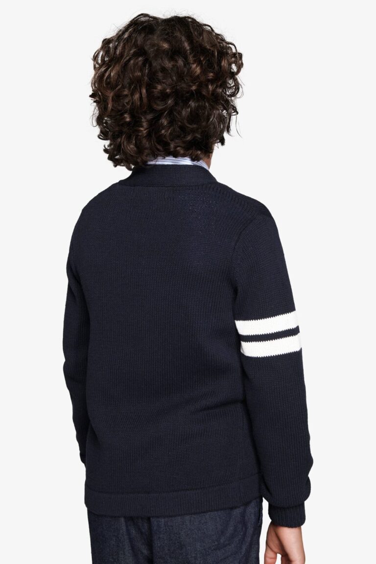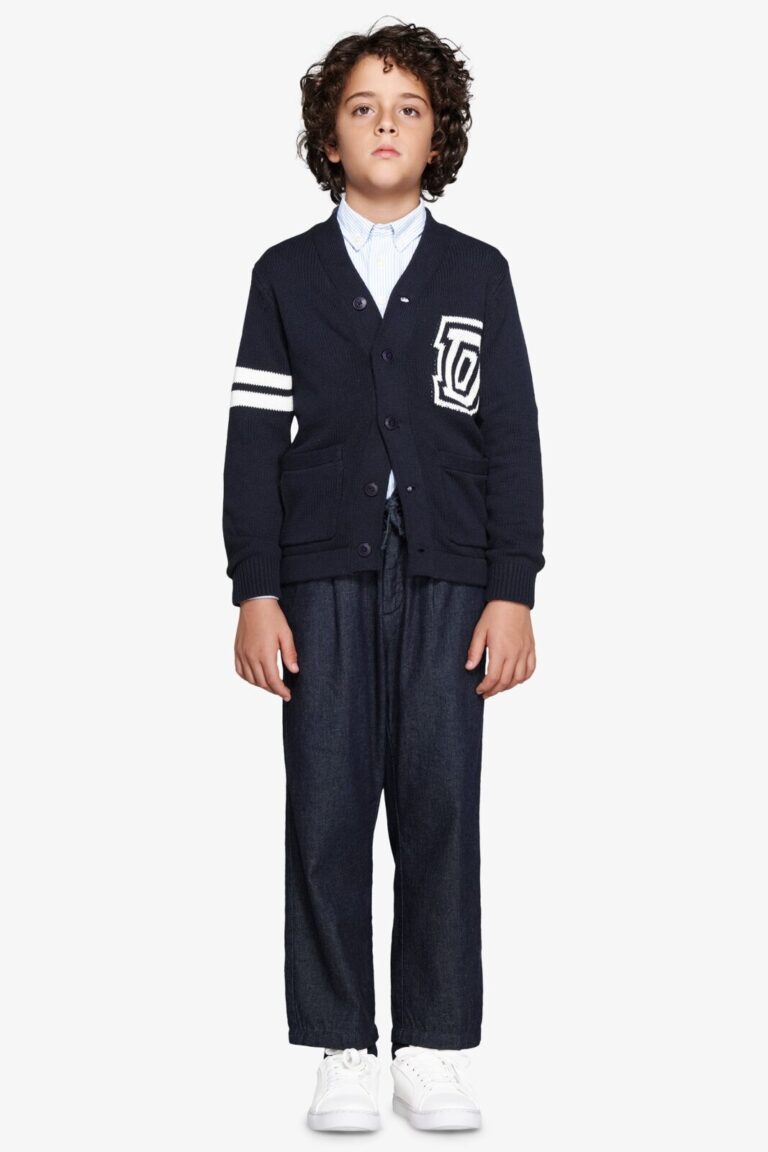 Dečiji kardigan sa V izrezom u plavoj nijansi, izrađen od 100% pamuka. Kopčanje na dugmad, praktični našiveni džepovi i kontrastni detalji u vidu veza i ivica daju mu moderan i razigran izgled. Slim fit kroj pruža urednu siluetu, dok je model udoban i idealan za svakodnevno nošenje. Sastav: 100% pamuk