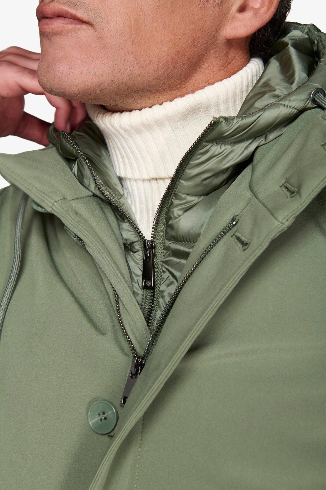 Klasična parka sa dodatnim uloškom (bib), kapuljačom i donjim dijagonalnim džepovima. Zatvara se rajsferšlusom i pruža udobnost i zaštitu u hladnijim danima. Sastav: 100% poliester