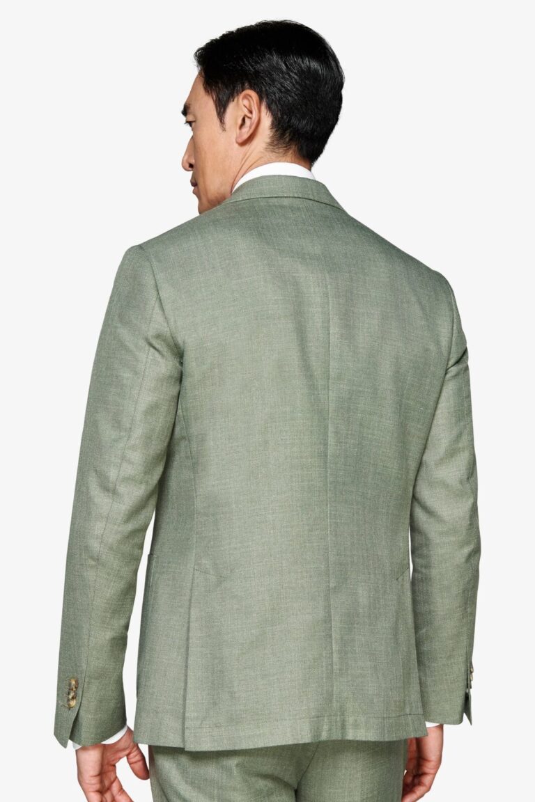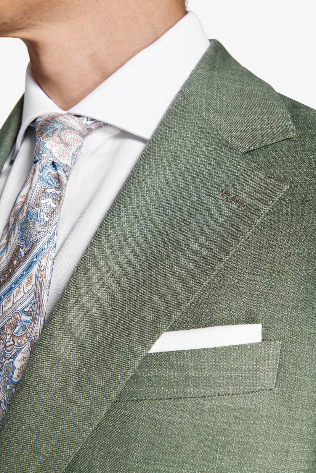 Muški sako izrađen od slub tkanine sa suptilnom teksturom, koja mu daje moderan i sofisticiran izgled. Slim fit kroj sa klasičnim reverima (notch lapels) i našivenim džepovima naglašava elegantnu siluetu.